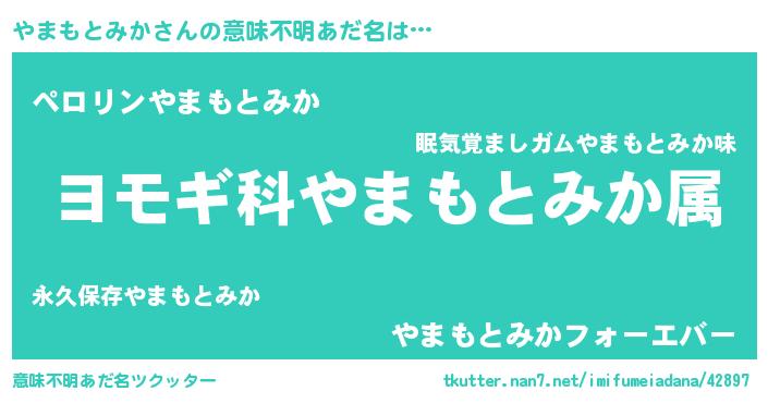 | 男性向けラノベタイトル風あだ名 | 『やまもとみか~年齢イコール彼女いない歴の魔法使い~』 |