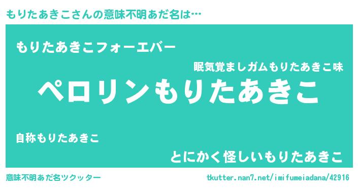| 肩書あだ名 | 『もりたあきこ社長』『もりたあきこ班長』 |