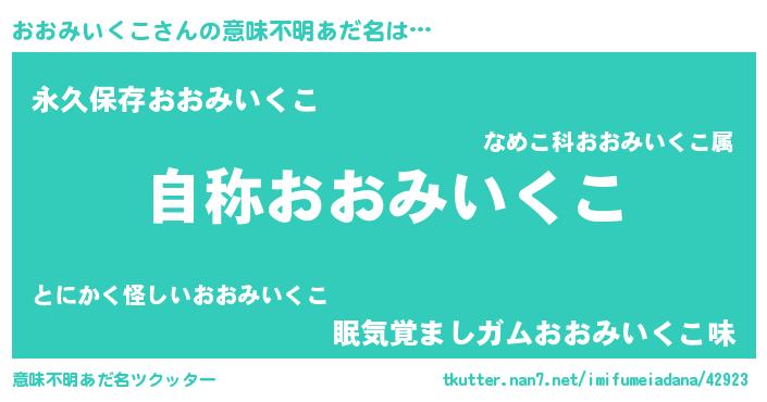 | 男性向けラノベタイトル風あだ名 | 『Re:おおみいくこから始める異世界生活』 |