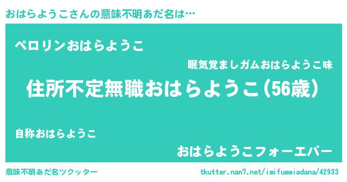 | 料理風あだ名 | 『おはらようこのカルパッチョ風』 |
