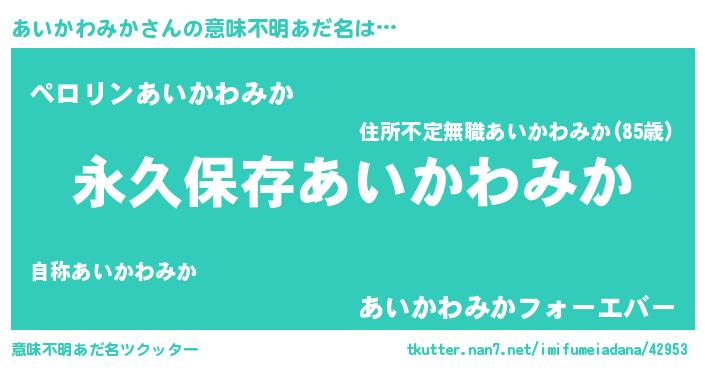 | ヘコむあだ名 | 『あいかわみか(震え声)』『あいにゅー』 |