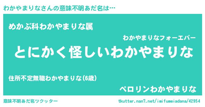 | 胡散臭い通販商品みたいなあだ名 | 『信頼と実績のサプリメント…その名も「わかやまりな」』 |