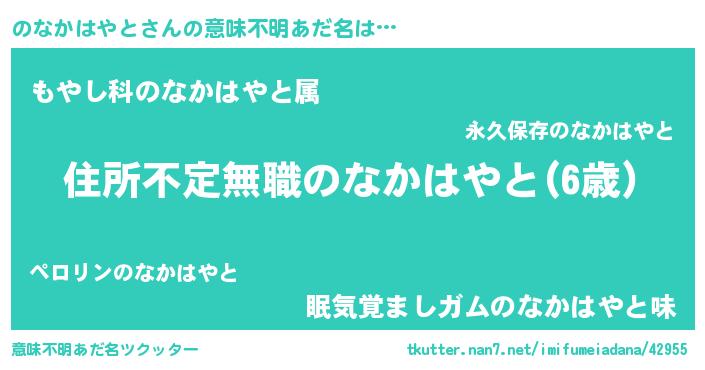 | ヘコむあだ名 | 『のなかはやと(笑)』『のなもー』 |