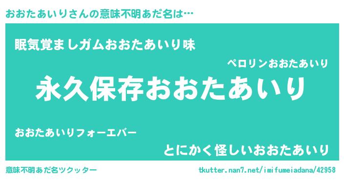 | 男性向けラノベタイトル風あだ名 | 『おおたあいりという概念が存在しない退屈な世界 』 |