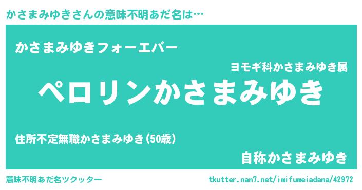 | 男性向けラノベタイトル風あだ名 | 『かさまみゆきの憂鬱』 |