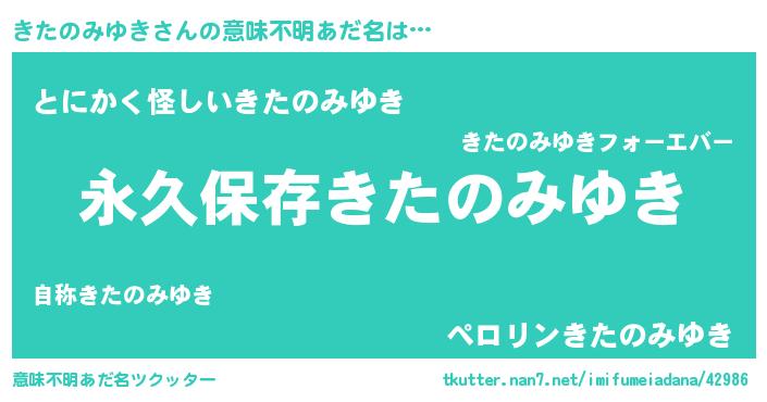 | 胡散臭い通販商品みたいなあだ名 | 『絶対に幸福をもたらす水素水…その名も「きたのみゆき」』 |