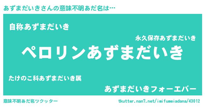 | 胡散臭い通販商品みたいなあだ名 | 『必ず成功するブレスレット…その名も「あずまだいき」』 |