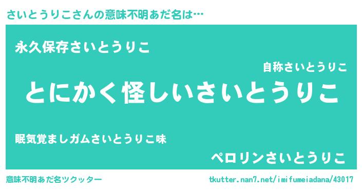 | ヘコむあだ名 | 『さいを』『さいとうりこ(爆)』 |