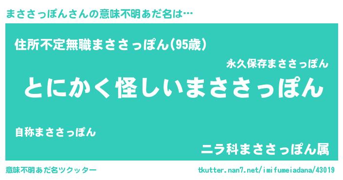 | 男性向けラノベタイトル風あだ名 | 『ダンジョンにまささっぽんを求めるのは間違っているだろうか』 |