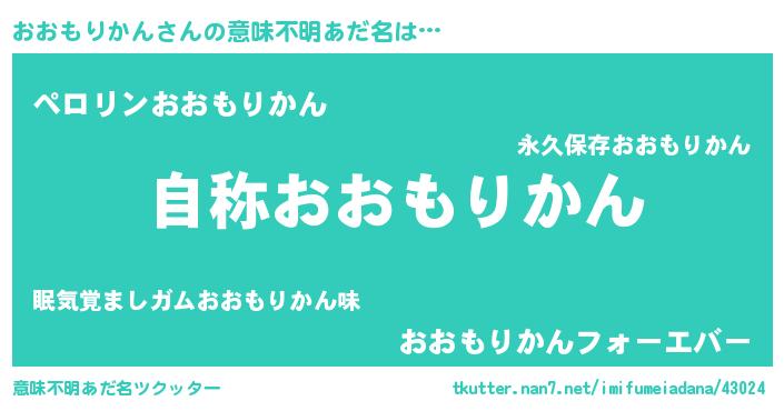 | 男性向けラノベタイトル風あだ名 | 『Re:おおもりかんから始める異世界生活』 |
