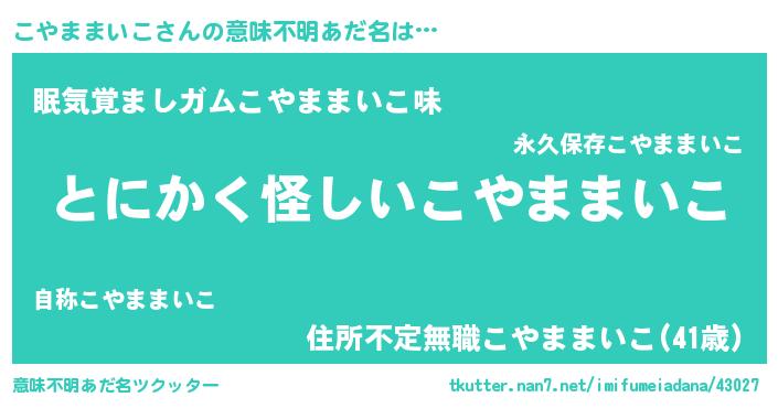 | ヘコむあだ名 | 『こやぷりん』『こやままいこ(小並感)』 |