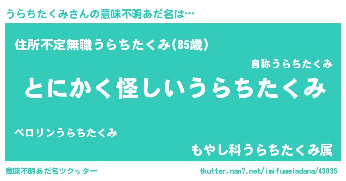 | 欧米人風あだ名 | 『ウサインうらちたくみ』 |