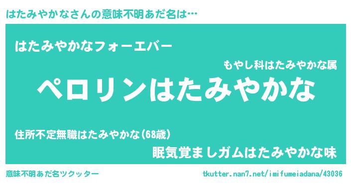 | 男性向けラノベタイトル風あだ名 | 『ハタミヤカナアートオンライン』 |