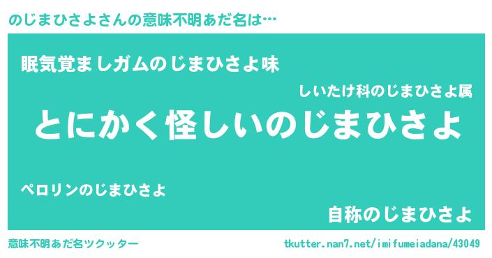 | 女子向けラノベタイトル風あだ名 | 『のじまひさよの卵を拾いまして』 |