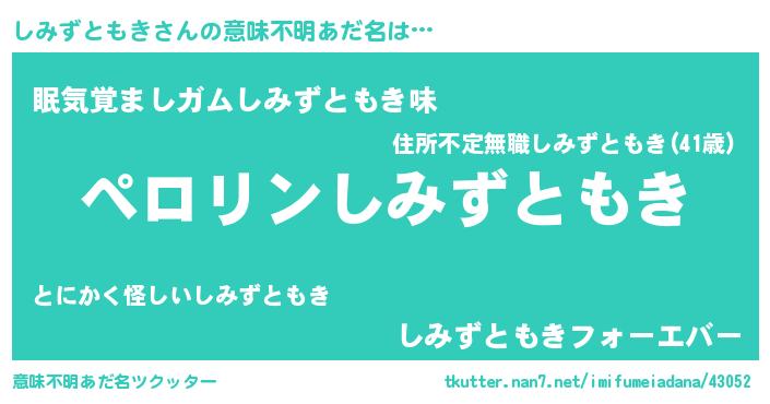 | 伝説のあだ名 | 『封印されしスナイパーしみずともき』 |