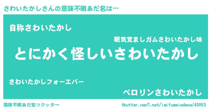 | ポケモン風あだ名 | 『ヒサワイタカシ』『メロサッワ』 |