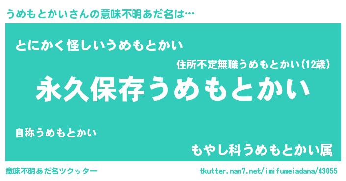 | 胡散臭い通販商品みたいなあだ名 | 『来世でも幸せになれる健康食品…その名も「うめもとかい」』 |