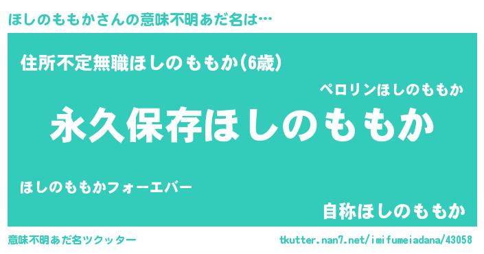 | ヘコむあだ名 | 『ほしのももか(笑)』『ほしにー』 |