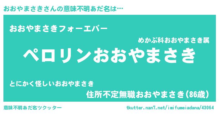 | 男性向けラノベタイトル風あだ名 | 『オオヤマサキアートオンライン』 |