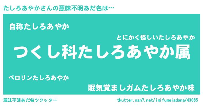 | ヒーロー風カッコイイあだ名 | 『最強戦士タシロアヤカ』『銀牙騎士タシ』 |