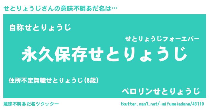 | ヒーロー風カッコイイあだ名 | 『ネオセトリョウジ』『仮面セトダー』 |