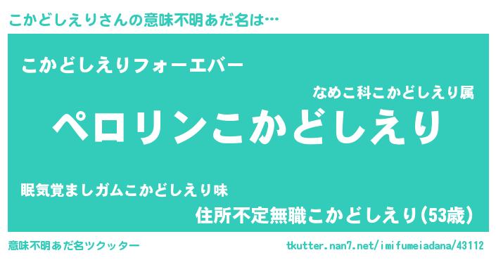 | 欧米人風あだ名 | 『マイケルこかどしえり』 |