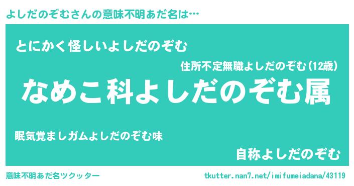 | 欧米人風あだ名 | 『アンジェラ・よしだのぞむ』 |
