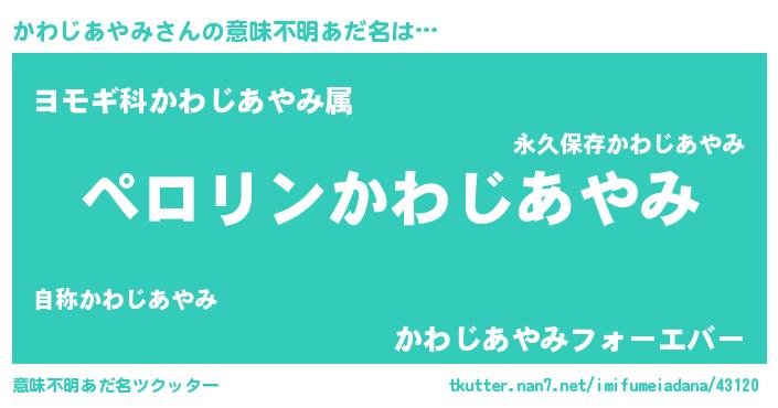 | 男性向けラノベタイトル風あだ名 | 『うちのかわじあやみが世界を掌握している!』 |