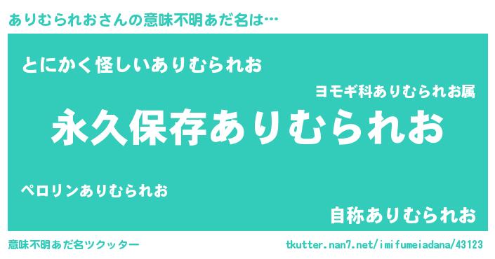 | 男性向けラノベタイトル風あだ名 | 『ありむられおという概念が存在しない退屈な世界 』 |