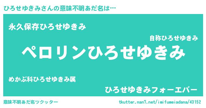 | 男性向けラノベタイトル風あだ名 | 『ひろせゆきみに滅ぼされるだけの簡単なお仕事です』 |
