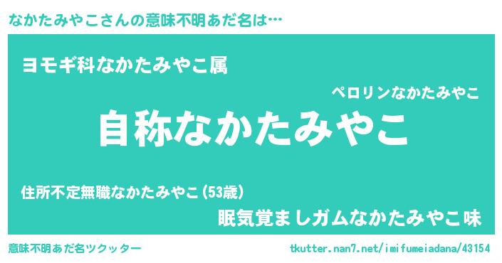 | 男性向けラノベタイトル風あだ名 | 『うちのなかたみやこが世界を掌握している!』 |