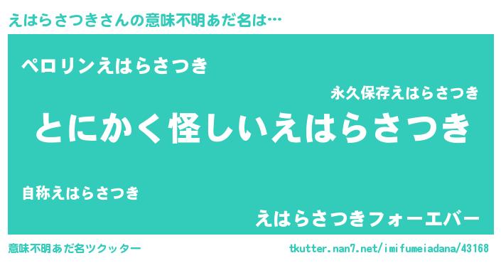 | 欧米人風あだ名 | 『ウサインえはらさつき』 |