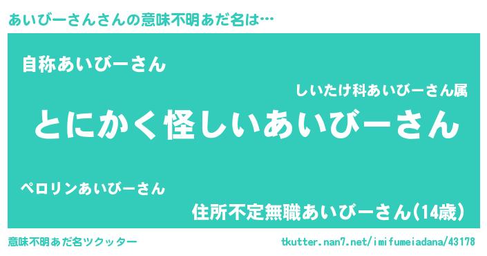 | 女子向けラノベタイトル風あだ名 | 『あいびーさんは平凡を望む』 |