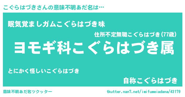 | 欧米人風あだ名 | 『トリンドルこぐらはづき』 |
