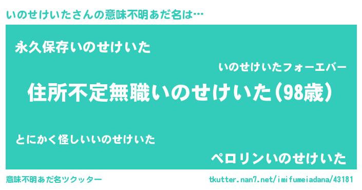 | ヒーロー風カッコイイあだ名 | 『仮面イノダー』『ネオイノセケイタ』 |