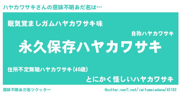 | 男性向けラノベタイトル風あだ名 | 『ハヤカワサキという概念が存在しない退屈な世界 』 |