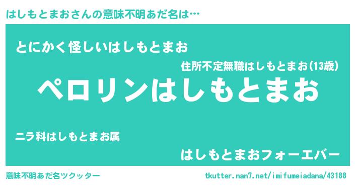 | 男性向けラノベタイトル風あだ名 | 『うちのはしもとまおが世界を掌握している!』 |