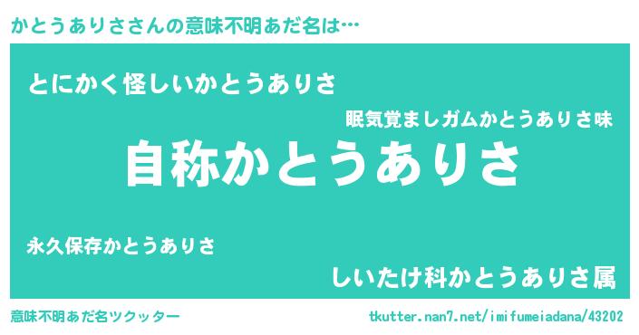 | 欧米人風あだ名 | 『ケンブリッジかとうありさ』 |