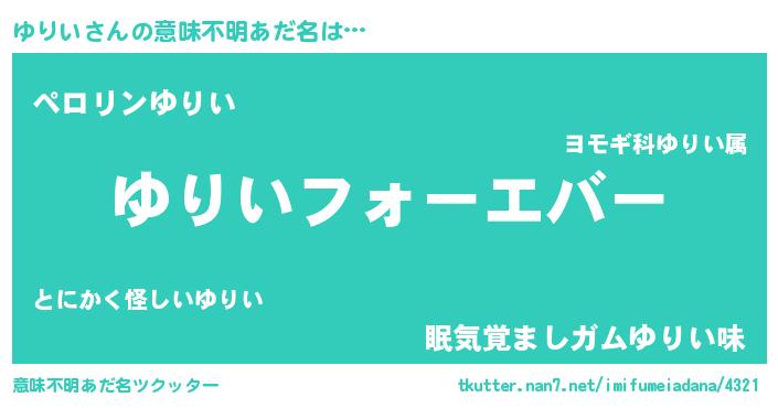 | 欧米人風あだ名 | 『ゆりいクリステル』『マイケルゆりい』 |