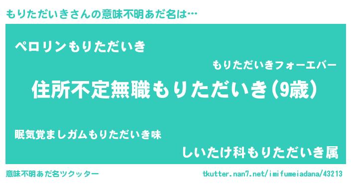 | 女子向けラノベタイトル風あだ名 | 『乙女ゲームの破滅フラグしかない悪役もりただいきに転生してしまった…』 |