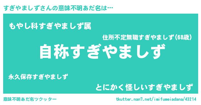 | 胡散臭い通販商品みたいなあだ名 | 『ガンによく効くアガリクス…その名も「すぎやましず」』 |