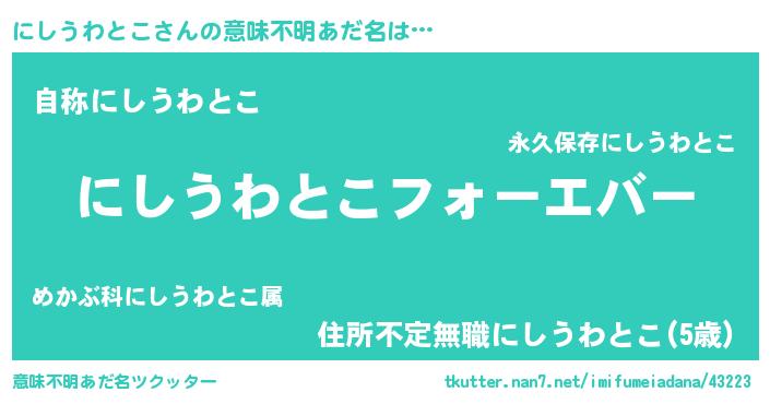 | ファンタジー風あだ名 | 『エターナルニシウワトコー』 |