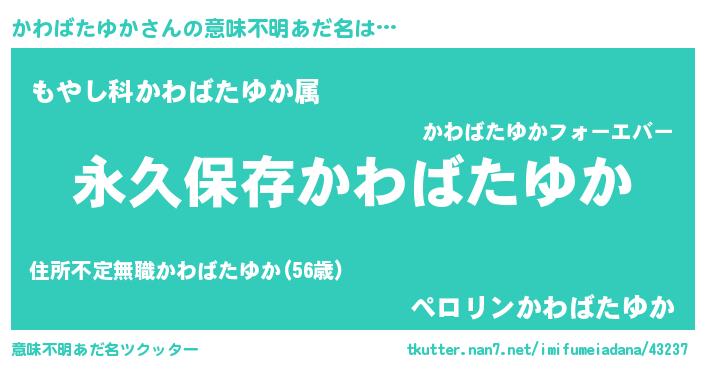 | ヘコむあだ名 | 『かわばたゆか(笑)』『かわにゅー』 |