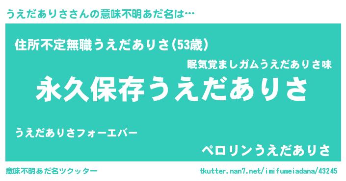 | 男性向けラノベタイトル風あだ名 | 『うえだありさという概念が存在しない退屈な世界 』 |