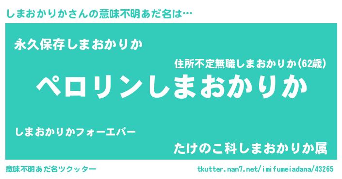 | 胡散臭い通販商品みたいなあだ名 | 『億万長者になれるブレスレット…その名も「しまおかりか」』 |