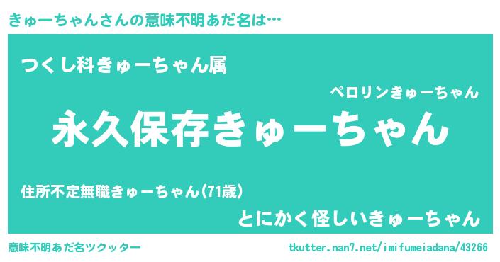 | 料理風あだ名 | 『きゅーちゃんの炊き込みご飯』 |