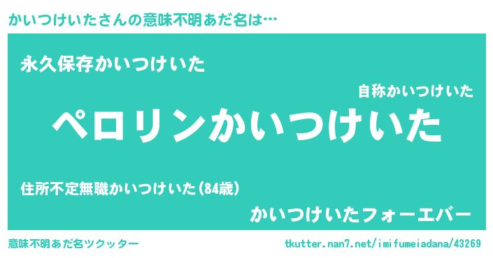 | 男性向けラノベタイトル風あだ名 | 『カイツケイタアートオンライン』 |