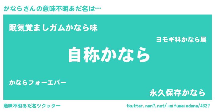 | ヒーロー風カッコイイあだ名 | 『超時空戦士カナラ』『愛の使者かなら』 |