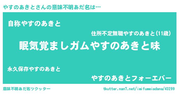 | 胡散臭い通販商品みたいなあだ名 | 『モンドセレクションを受賞した隕石のかけら…その名も「やすのあきと」』 |