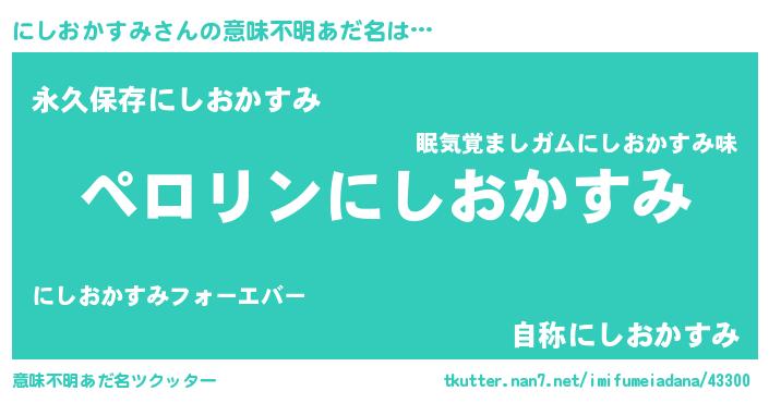 | 胡散臭い通販商品みたいなあだ名 | 『必ず成功するブレスレット…その名も「にしおかすみ」』 |